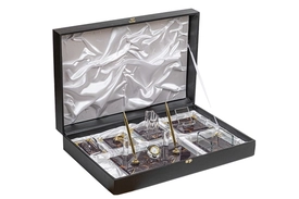 | İçerik: Kalem Seti, Notluk, Kalemlik, Küp Notluk, Kartvizitlik, Telefon Standı, Özel Siyah Deri Kutu |